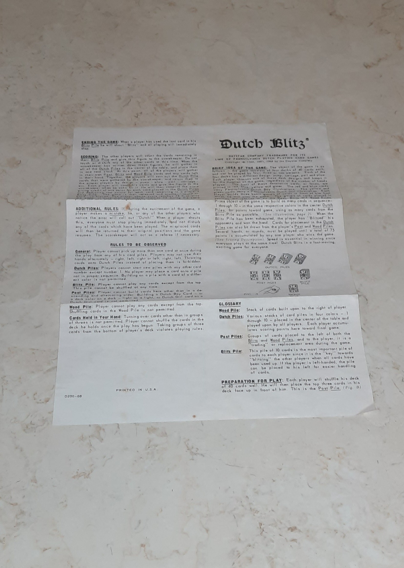 Hobbies Games Toys. Dutch Blitz Card Game family-friendly card game that will test your skills 1 x Rules. Everyone is dealt three cards.